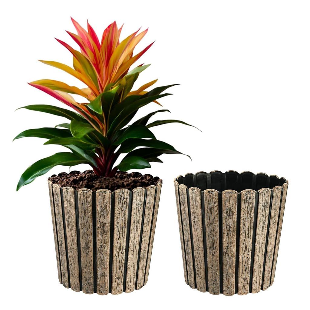 2 Pcs Wooden Texture 11 Inch Pots for Plants Balcony and Living Room | Flower Pots for Garden | Decorative Planters for Home Decor, Outdoor Indoor Plants and Office | Thai Wood