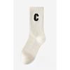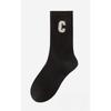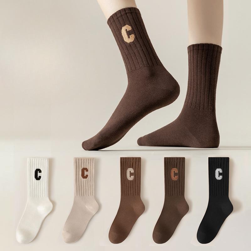 Women's Spring and Autumn Mid-calf Socks, Sweat-absorbing C-letter Color Socks, Embroidered Women's Socks, Long Cotton Socks