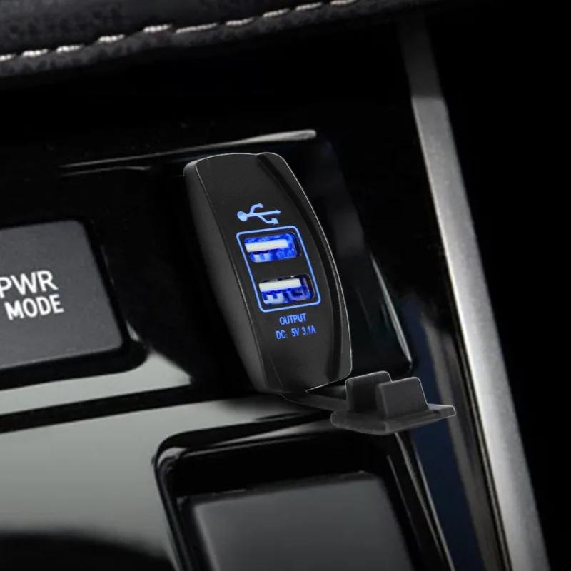 3.1A Dual USB Car Charger Socket Rocker Switch Waterproof Power Outlet for Car Boat Truck RV Marine Vehicles Rocker Switch Panel