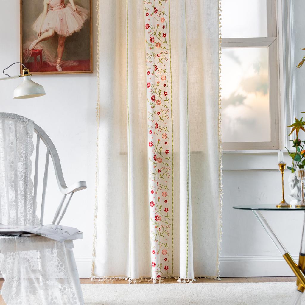 Curtain Finished Product, Cotton And Linen Art Tassel Embroidery Bay Window Curtain