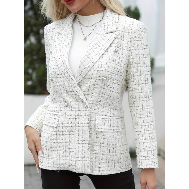 European and American Winter Fashion Casual Double Breasted Women's Small Suit Lapel All-Match Outerwear Women Suit Jacket