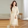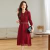 Lapel Lace Temperament Elegant Knitted Dress Women's Autumn and Winter New with Coat Inside with Long Sweater Skirt