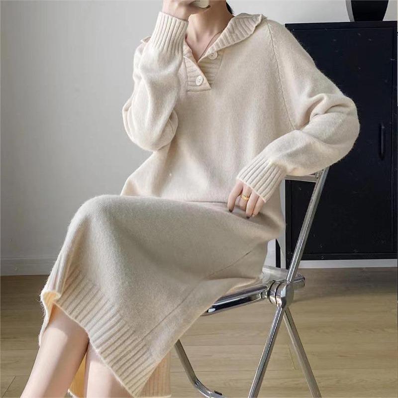 Premium Feeling with Coat Base Knitted Dress Autumn and Winter New High-neck Straight Medium and Long Sweater Skirt Women