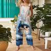Women's Casual Jumpsuit Sleeveless Christmas Printed Cotton Jumpsuit