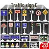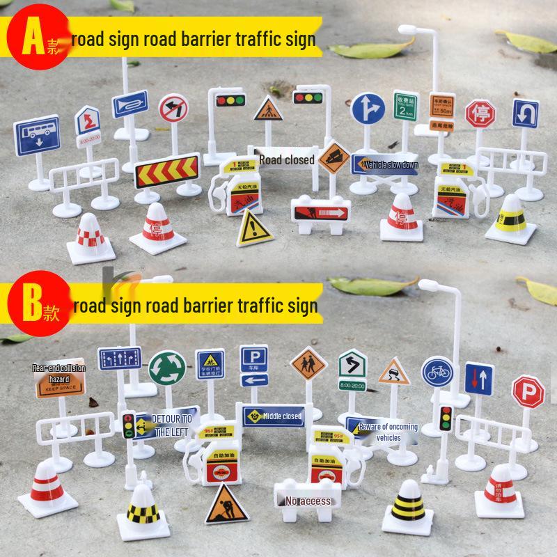 Children's DIY Model Parking Scene with 28-Piece Road Signs and Traffic Signposts Set, Including Free Gifts.