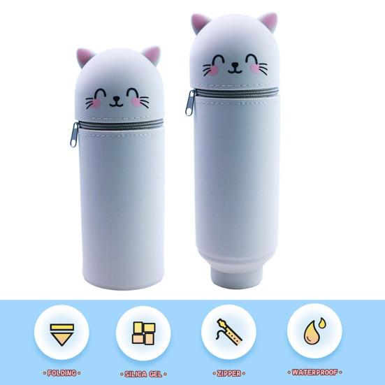 Introducing the versatile pencil bag, a must-have accessory for students, college-goers, and adults alike. This pen case boasts a large capacity, accommodating up to 15 standard size pens effortlessly. Its unique design allows it to stand independently, doubling up as a convenient pen holder with just a simple press at the bottom. Crafted from soft and smooth silicone, this pencil bag is not only easy to clean with water but also offers a cute animal-inspired design that adds a touch of charm to your stationery collection.