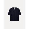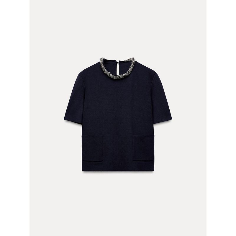 Za2024 Autumn New Women's Clothing Silm Neckline Beaded Short Sleeve Round Collar In Black Plain Stitch Tops 3920168