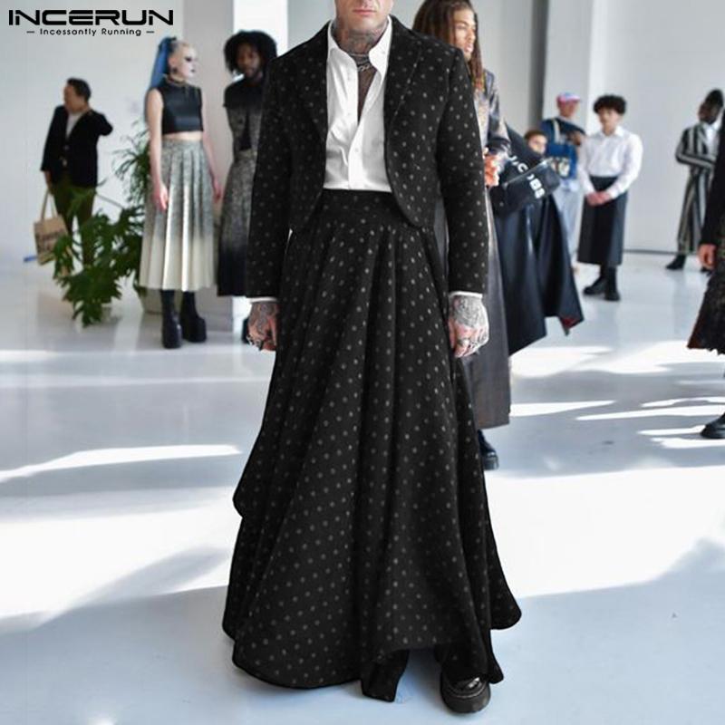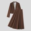 INCERUN Men Long Sleeve Polka Dots Cropped Blazer and Long Skirts Sets Outfits