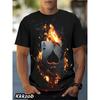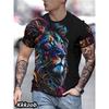 Men's Lion Print Short-sleeve Round Neck T-shirt, Lightweight and Breathable, Trendy and Cool for Casual Outdoor Activities.