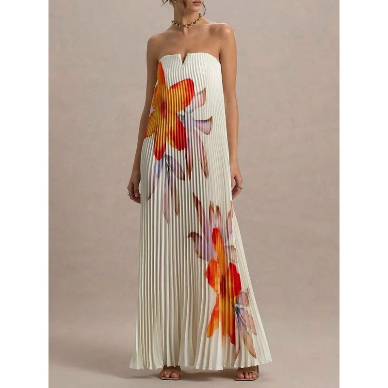 Fashion Export Print Tube Top Loose Heavy Industry Pleated Long Vacation Photo Maxi Dress Female