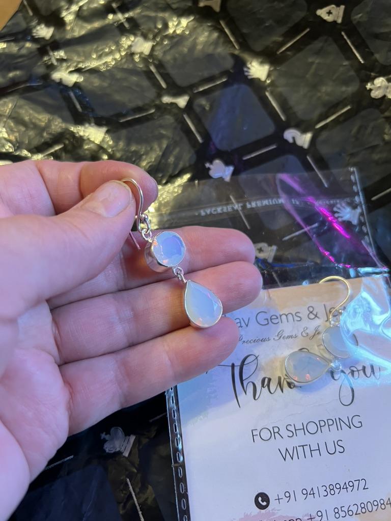 Natural Milky Opal Gemstone 925 Sterling Silver Jewelry Handmade Earrings 1.88" EE-73-26