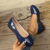 Large Size Casual Single Shoes Women's Spring New Wedge Heel Small Leather Shoes Women's TEUM Single Shoes Women
