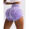 High Waist Slimming Yoga Shorts Women's Sport Running Fitness Shorts Tight Fitting Leopard Print Three-Quarter Length Outerwear