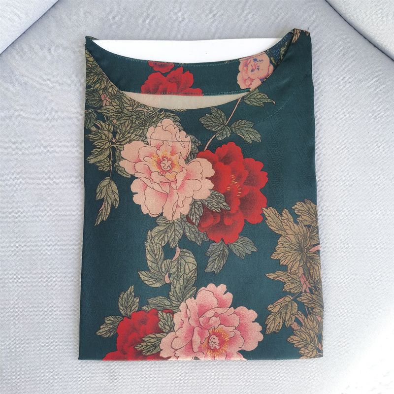 Ladieswear Summer Clothes T-shirt Short Sleeve Silk Plus Size Women's Clothing Middle-Aged and Elderly People's Clothes Loose Belly-Covering Coat
