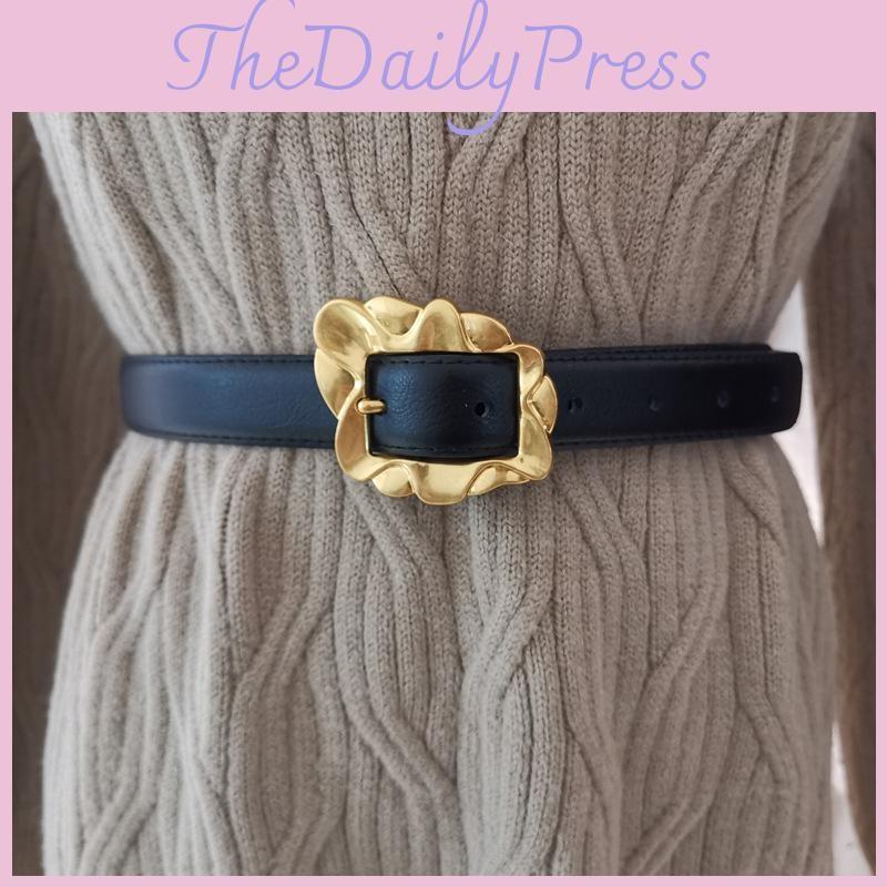 Women Belt Leather With Flowers Shaped Metal Buckle For Daily Casual Office Use