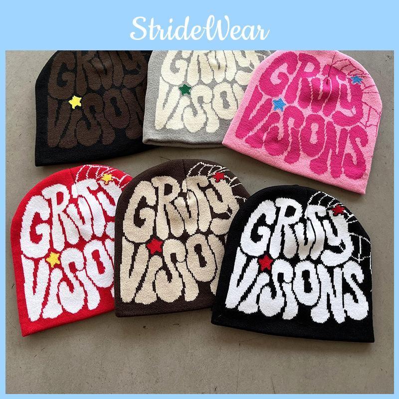 Grvty Letters Visions Knit Beanie Hats Winter Embroidered Streetwear Casual