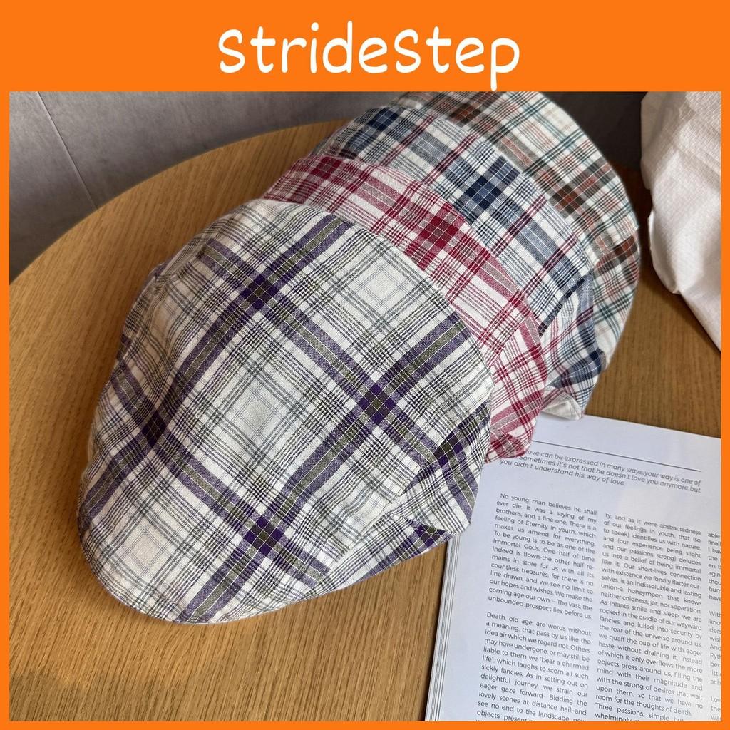 Women Summer Grid Beret Hat Short Brim Cotton Blend Material Sun Sunlight Block