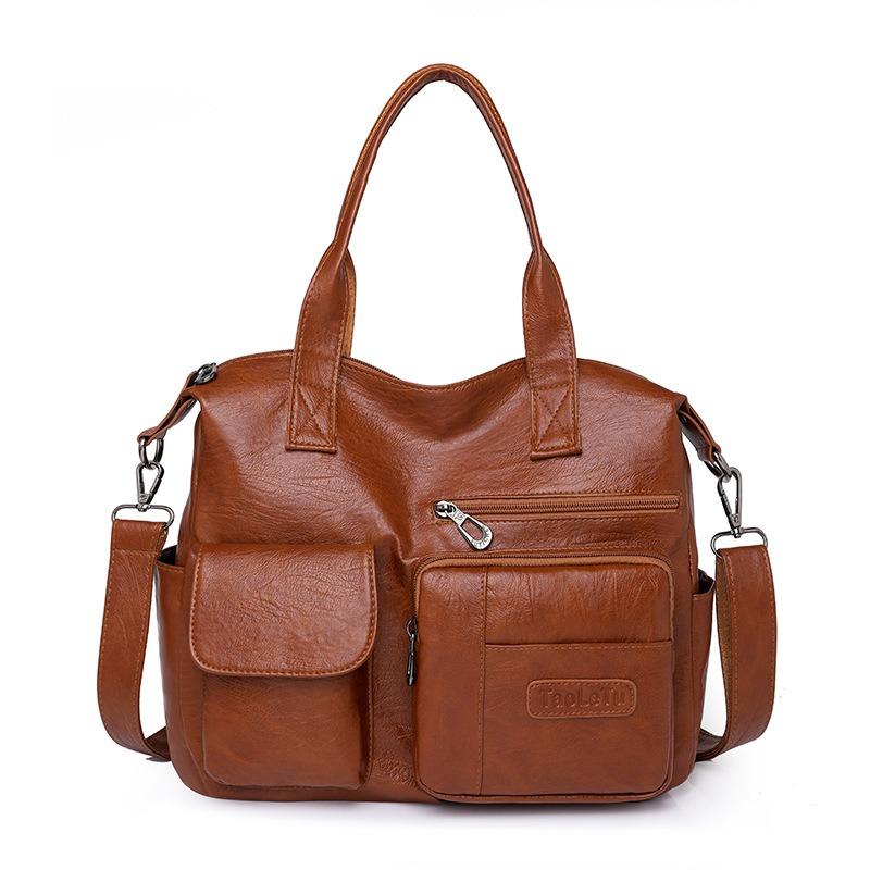 Soft Leather Handbag Female Vintage PU Shoulder Bag Multi-pocket Messenger Bag Shopping Lady Crossbody Bags Mommy Totes
