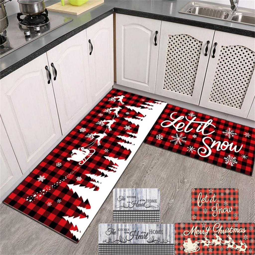 Plaid Christmas Tree Merry Christmas Kitchen Mats Set Of 2, Winter Home Decor Low-key Kitchen Rugs