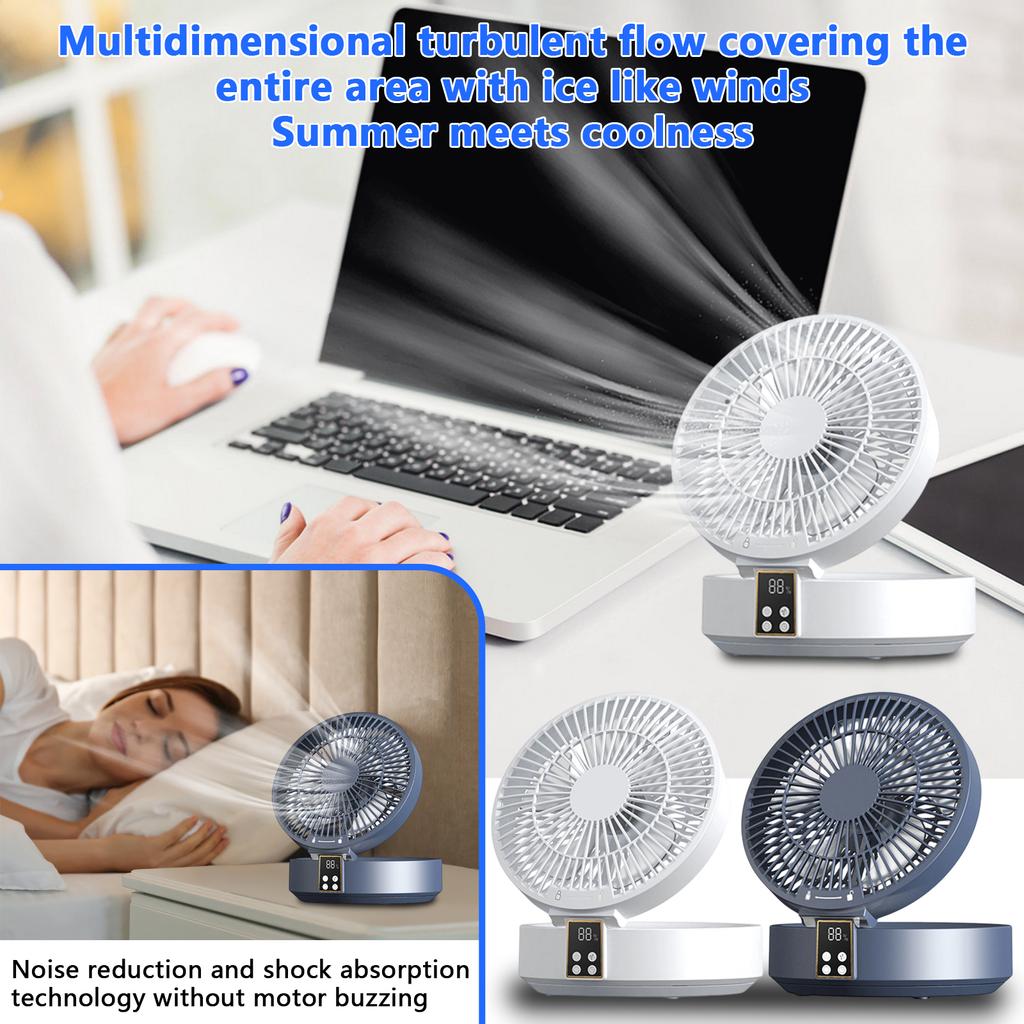 Foldable Wall Mounted Fan With Night Light Remote Control 3 Speed Adjustable Oscillating Silent Fan, Suitable For Bedroom, Living Room, Kitchen Portable Fan: Ultra-compact and foldable, it fits easily into your bag. It features an advanced aerodynamic design that circulates to balance the indoor temperature. It provides fast, refreshing both indoors and outdoors, keeping you cool anytime, anywhere. Flexible Three-Speed Settings: This fan is equipped with a powerful brushless motor, which is powerful enough to drive the fan blades to rotate at high speed steadily, bringing strong gusts . Three-speed adjustment options to meet your various needs.Drill-free: This drill-free fan is easy to install and can be directly mounted on the wall, suitable for renters and homeowners. It can be between rooms to ensure flexible use. It is stable and the design complements any decoration style, combining practicality and beauty.