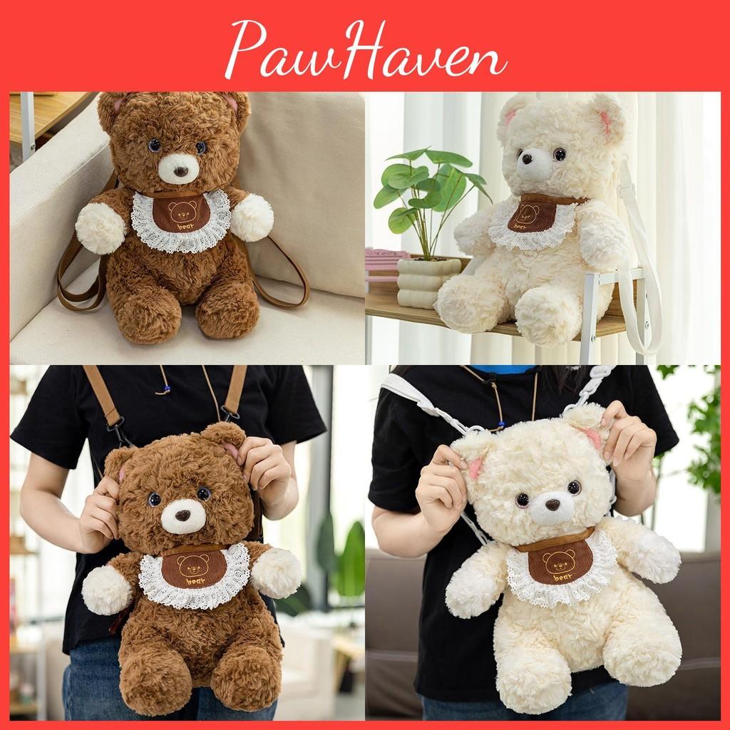 Scarf Lace Cute Teddy Bear Plush Toy Backpack With Detachable Shoulder Strap
