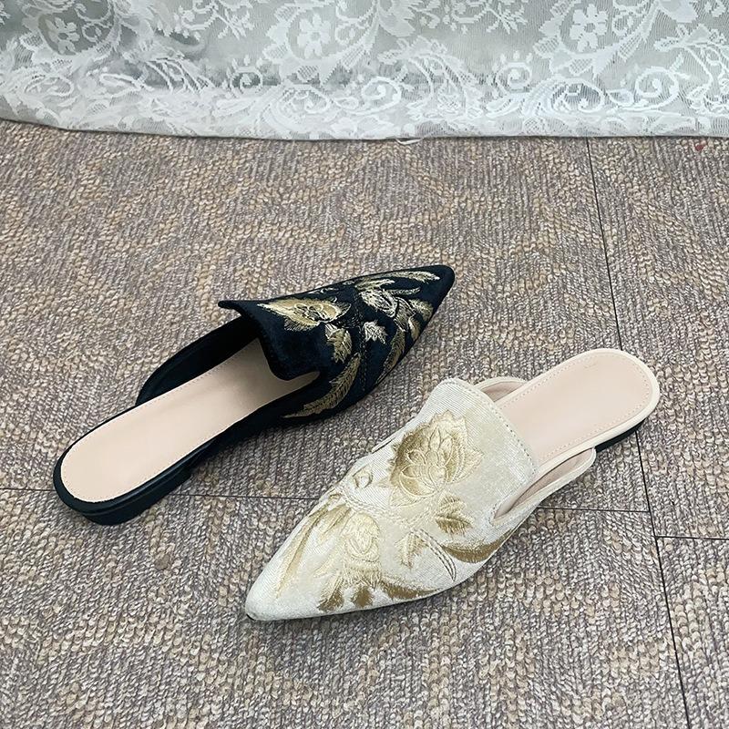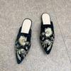 Cool Slippers Women's Spring and Autumn Embroidery Pointed Micro-heel Non-slip Soft-soled Sandals