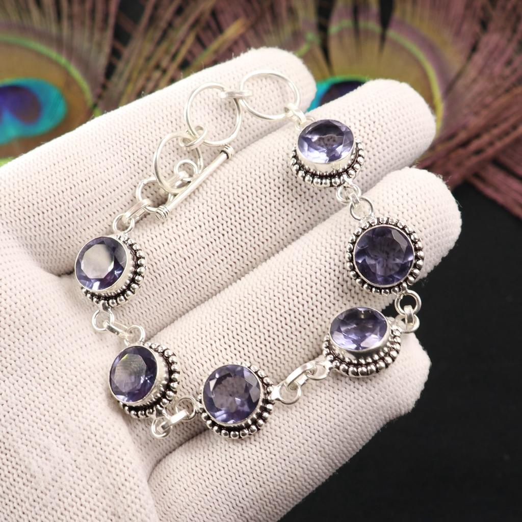 Iolite Gemstone 925 Sterling Silver Handmade Jewelry Adjustable Bracelet 7-9" RB-17-2