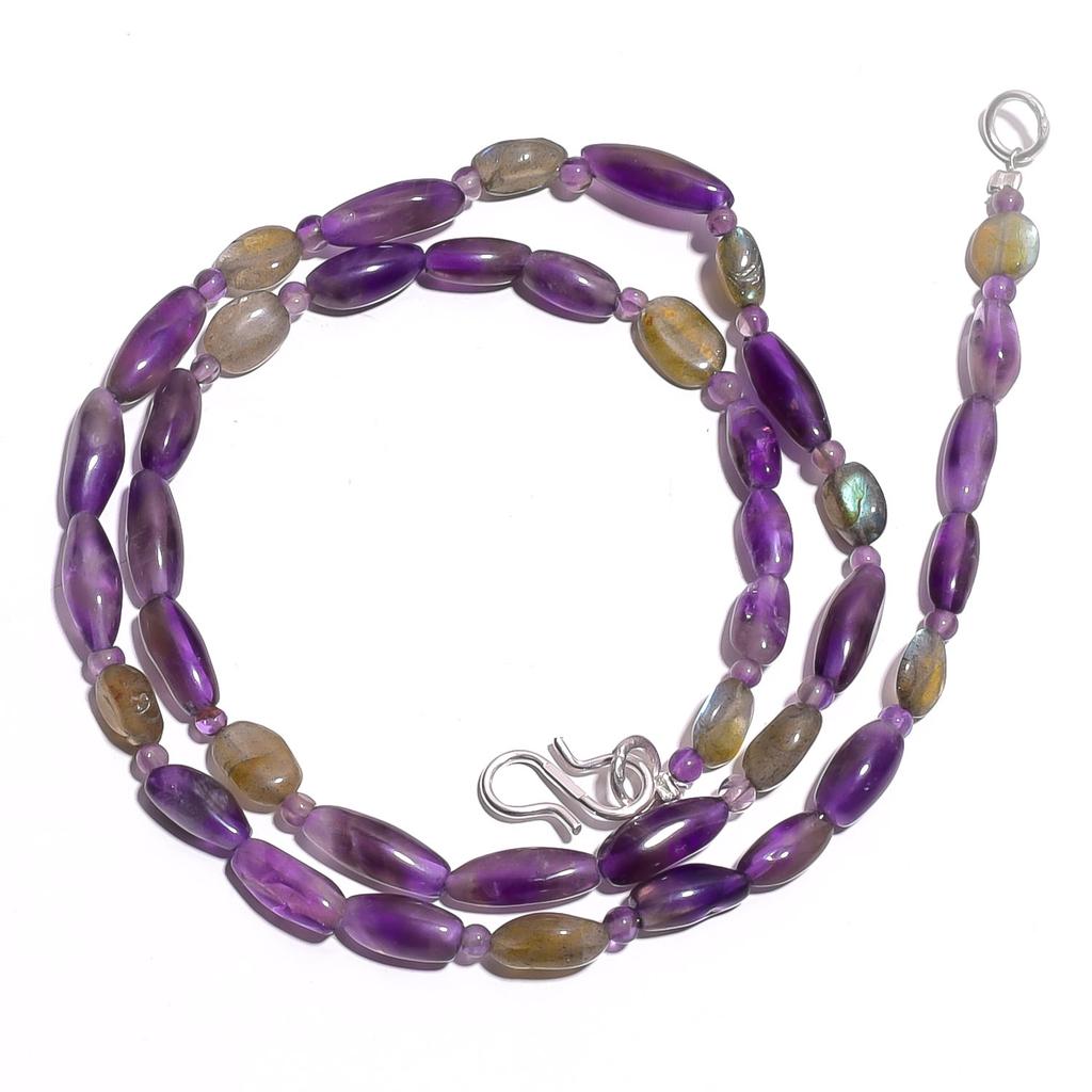 Natural Amethyst Labradorite Gemstone Mix Shape Smooth Beads Necklace 17" UB4241 UB-4241