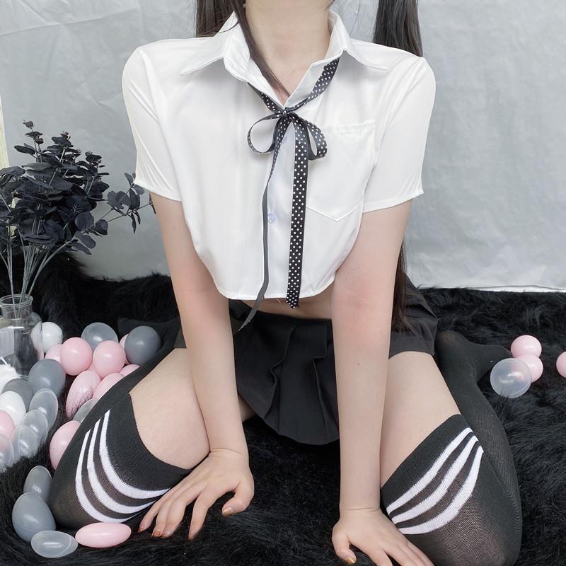 XXOO Sexy Lingerie Female Sexy Perspective Student Shirt Bow Tie Uniform Temptation British Skirt