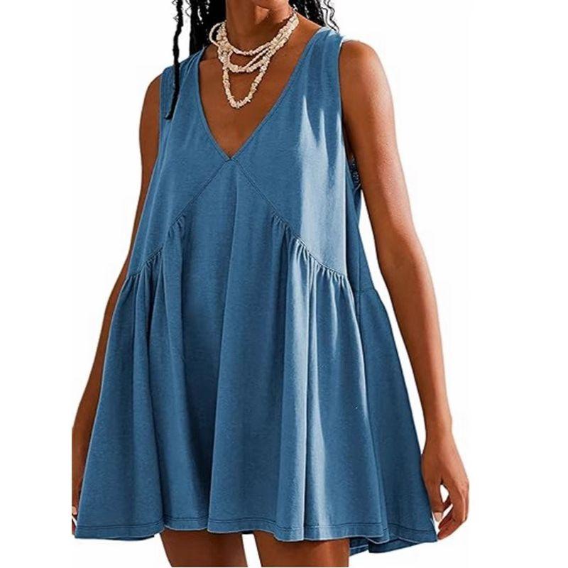 Vneck Sleeveless Solid Color Vest Dressv Neck Sleeveless Pure Color Vest Dress