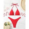 2025 Women White Bikini Chest Padded New Sexy Halter Bikini Two-Piece Set with Drawstring Straps Solid Brazilian Bathing Suit