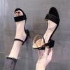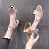 Spring and Summer New Thick Heel Fish Mouth Buckle Solid Color Side Empty Casual Sandals