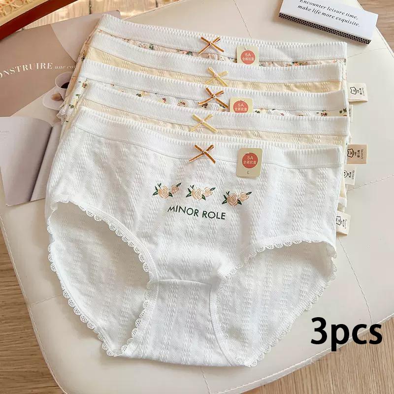 3pcs Cotton Women Flower Printe Panties Adolescent Mid Waist Underwear Girl Fashion Brief Breathable Panty Student Soft Lingerie
