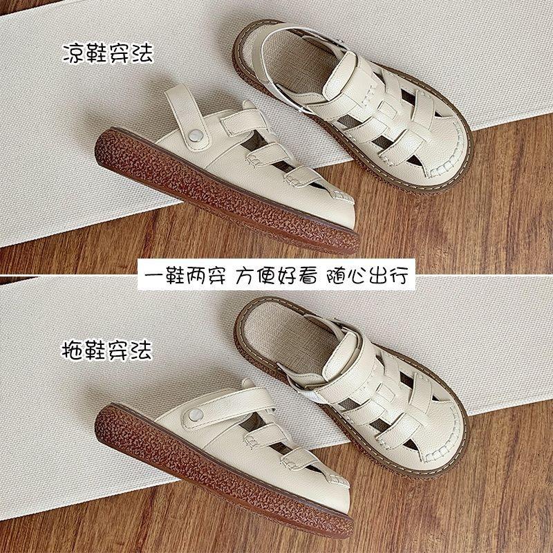 Sandals Women's Thick Soles Increase the Height of One Shoe and Two, Wear College Style Versatile Bag Head Half Slippers Hollow Cute Hole Shoes