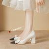 High Heels Women's Spring New Light Mouth Thick Heel Bow Single Shoes Women's Work Shoes Women