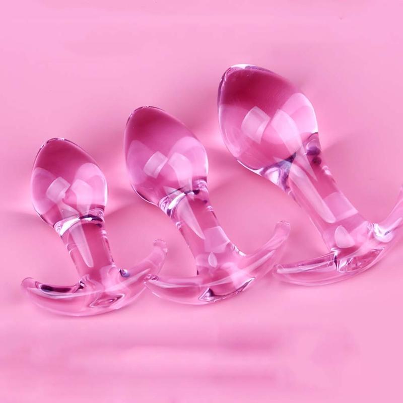 3pcs Small Anal Plug Smooth Glass Butt Plug Beginner Women Sex Toys Pink Glass Anal Plug Anchor/ Base Choose Prostate Massage