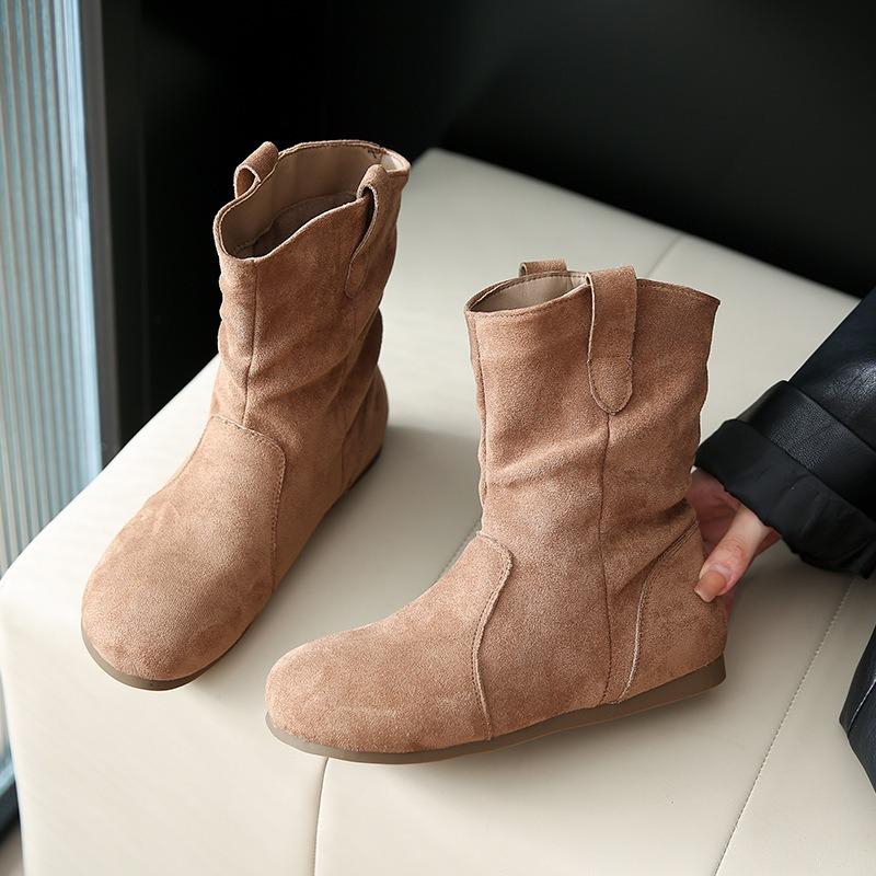 Retro Pleated Stacked Short Martin Boots Women's Autumn New Simple Retro Flat-bottomed Comfortable Knight Boots