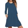 Fall Spring Dress Round Neck A-line Pockets Loose Big Hem Long Sleeves Mini Dress Pure Color Casual Dating Shopping Short Dress