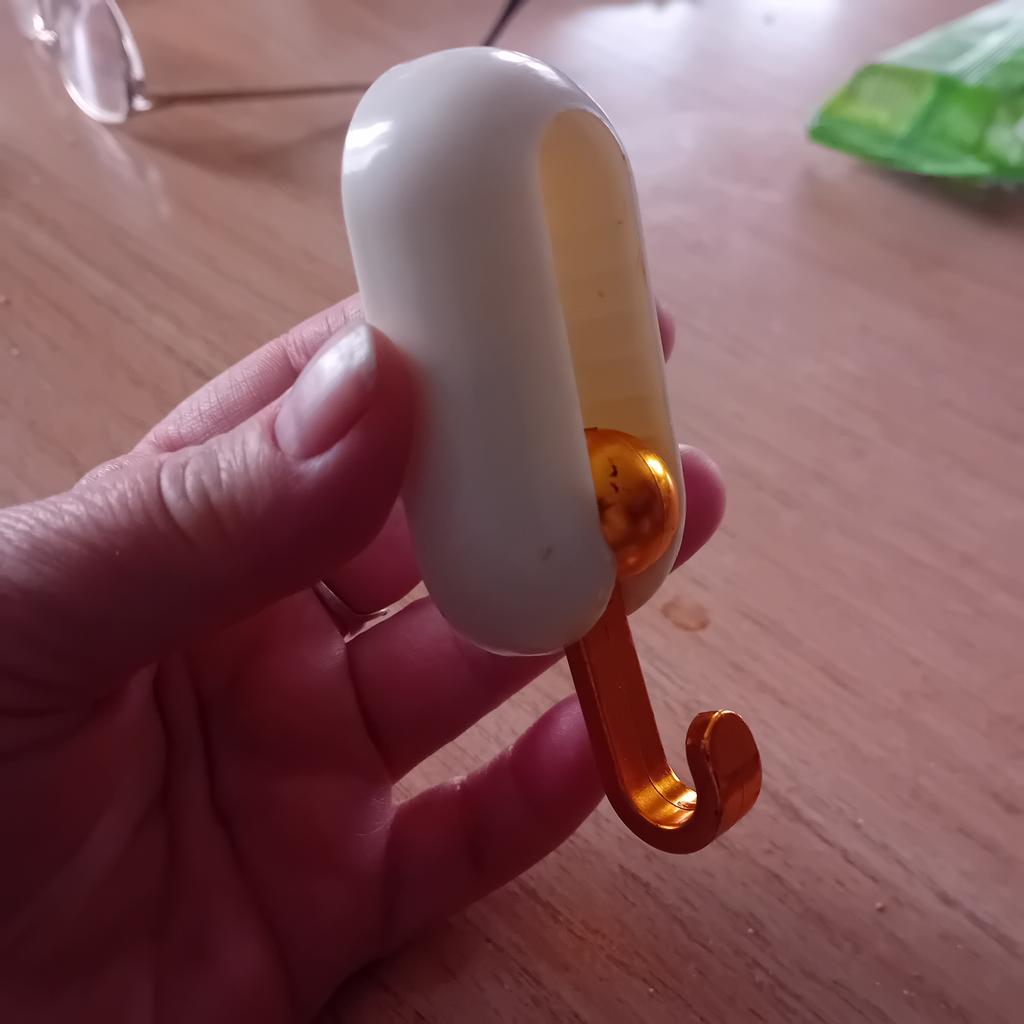 Glorious hooks. I will use them for towels. The hooks are plastic, so they are not suitable for heavy items. There is a sticky layer on the back, they are easy to attach.