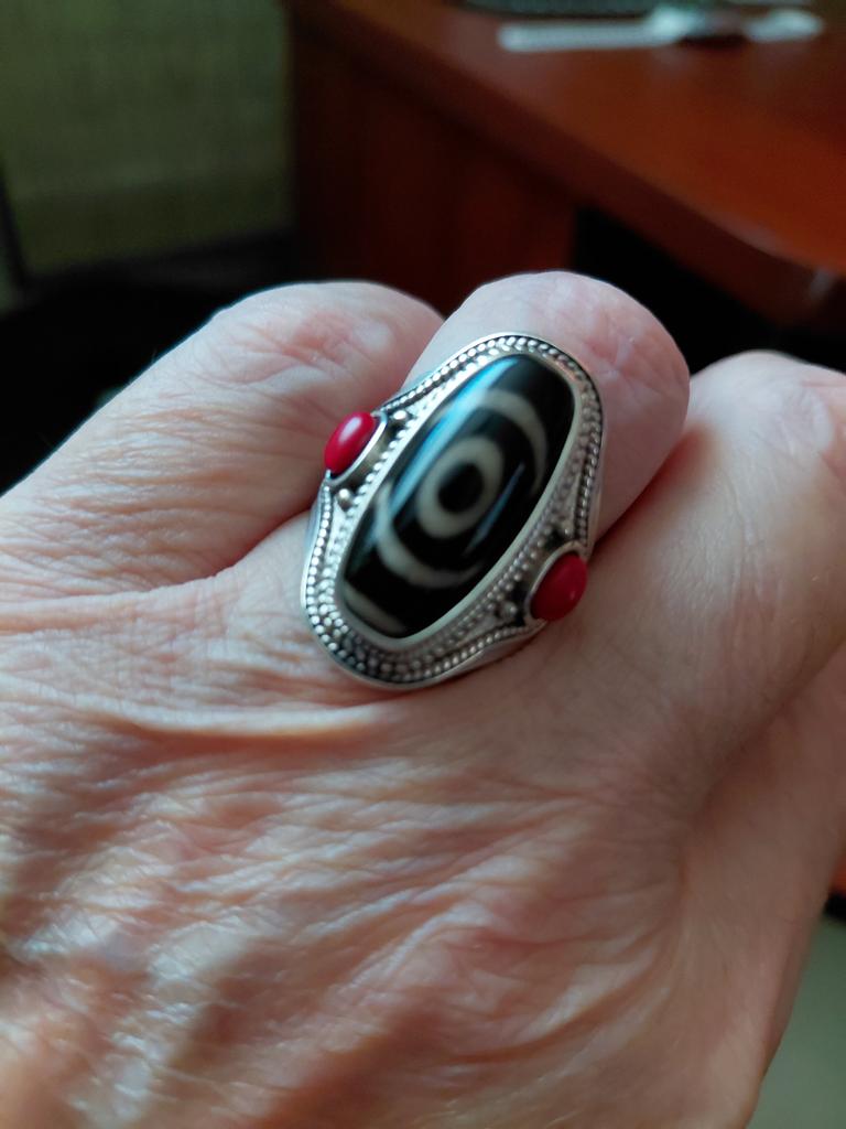 1.18" Collect China Exquisite Pure Silver Inlay Red Coral Beads Tianzhu Dzi Ring