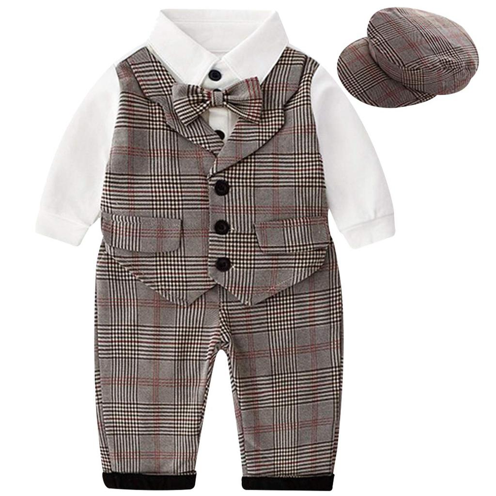 Famuka Baby Romper Set with Bow Fake and Perfect for Long and New and Peach Perfect As a Baby Shower Gift or Gift Boys' 3-Piece Tie, Vest, Hat.
