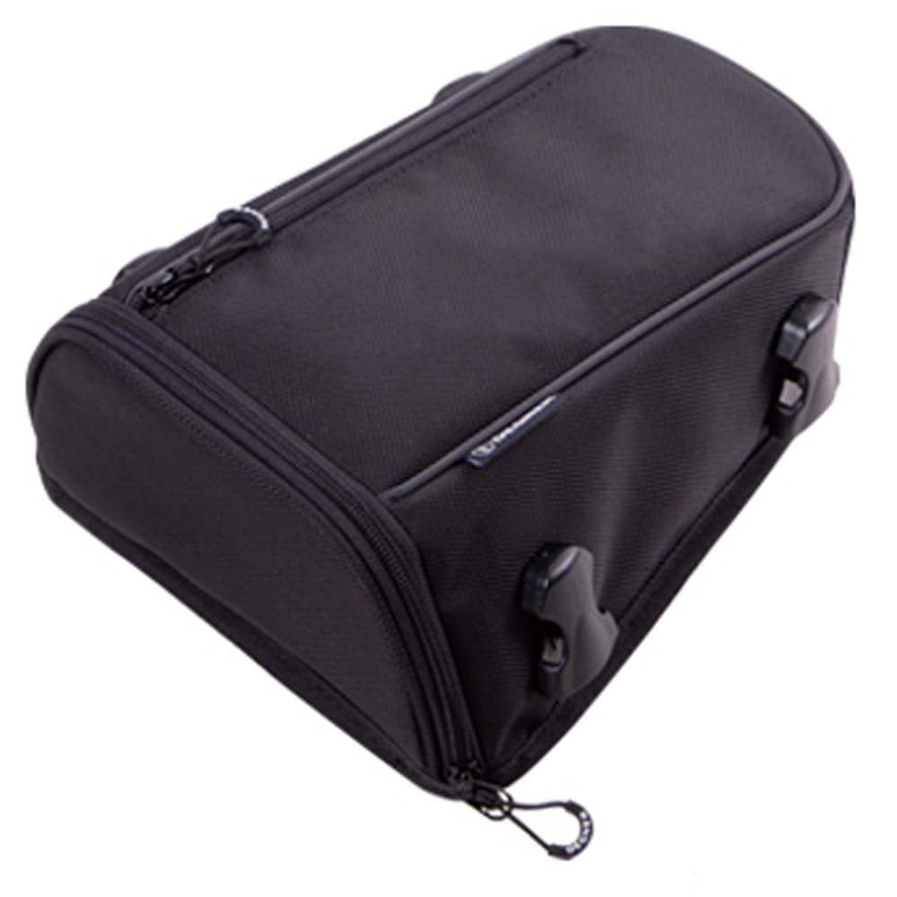 A 2-way bag that fits perfectly on a compact pillion seat. ● Belt can be stored When attached to the seat, the waist belt can be stored in the slit on the back. ● Rain cover pocket A pocket for the rain cover is provided at the bottom, allowing you to quickly put on the rain cover even in sudden rain showers. The rain cover can be fastened to the main body with a hook-and-loop fastener, preventing it from being blown away by wind while riding. ● Elastic loop prevents flapping Any excess waist belt can be fastened by sliding the elastic loop to prevent it from flapping. ● Perfect size for touring There is enough room to fit a wallet or water bottle, making it the perfect size for short trips. ● Zipper pocket There is also a zipper pocket on the front, where you can put your smartphone and other items for quick access.