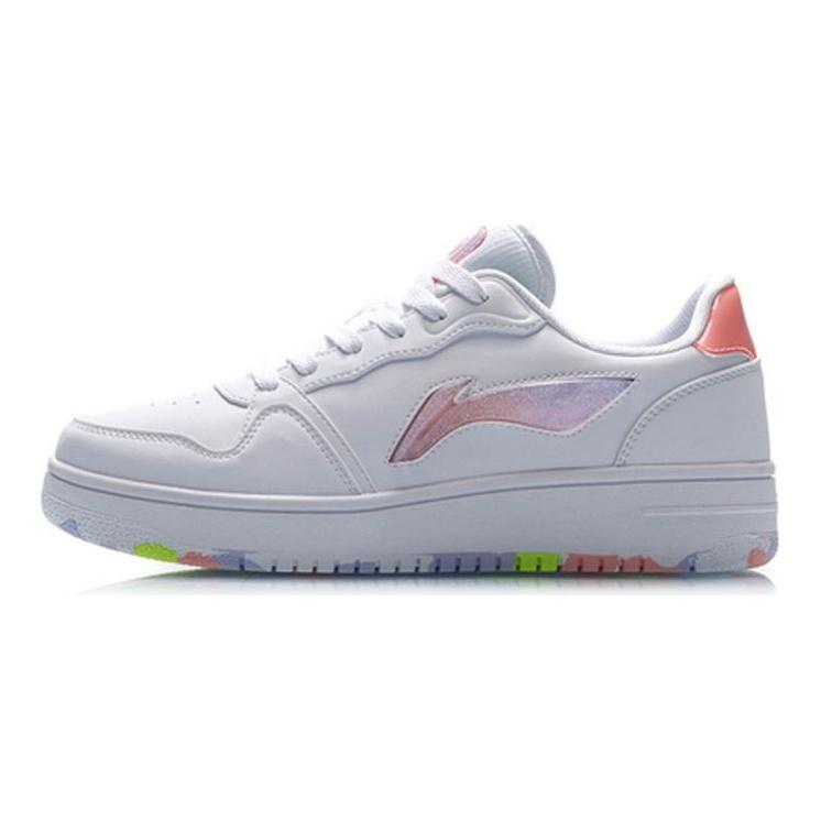 Li Ning Leather Classic Color Label Shock Absorbing Non-Slip Wear-Resistant Low-Top Casual Shoes Women Sneaker White Purple AGCP362-1