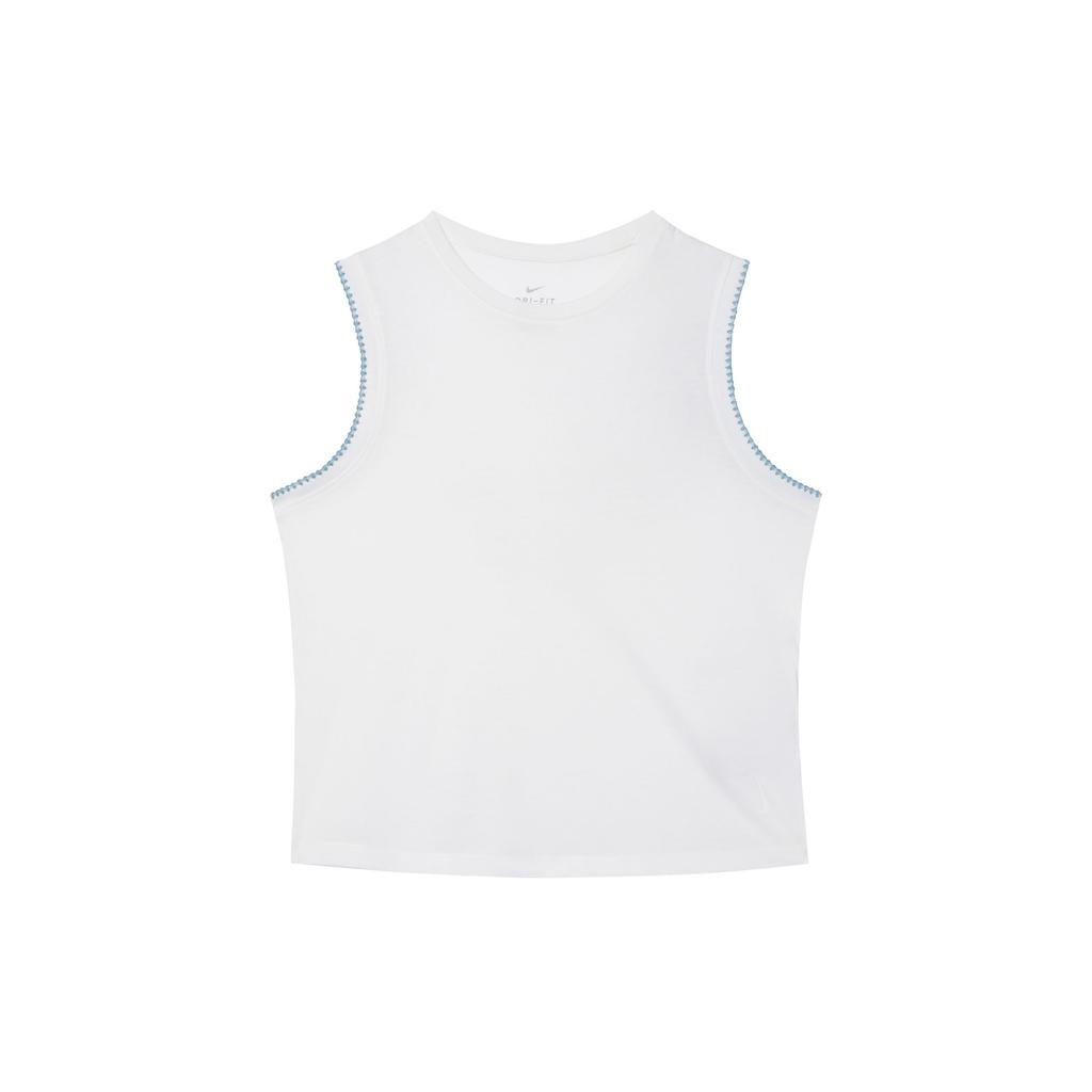 Nike Yoga Crochet-Edge Solid Casual Round-Neck Tank Top Women Tops Sail-White DA1047-133