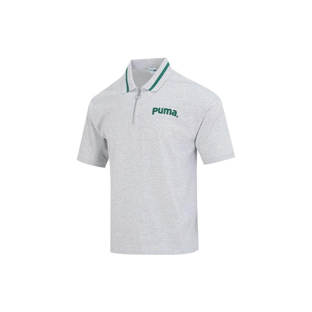 Puma Logo Print Zip-Up Short Sleeve Polo Shirt Men Tops Grey 622541-04