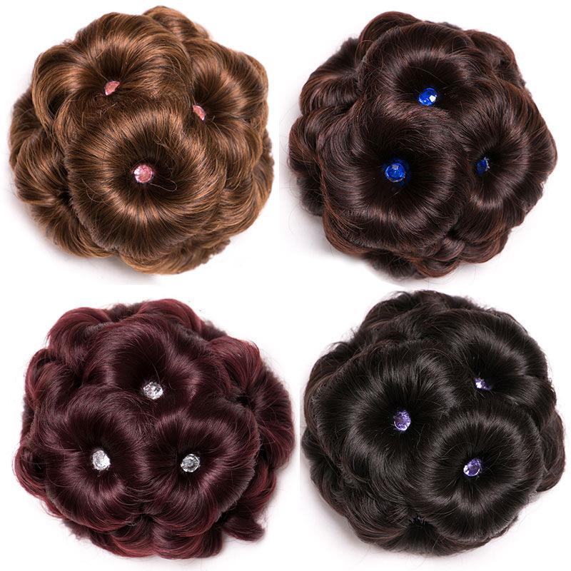 1Pc Synthetic Hair Bun Bud Hair Clips With Diamond Colorful Shiny For Women Ponytail Claw Clip Lifelike Hairpiece Styling Tools