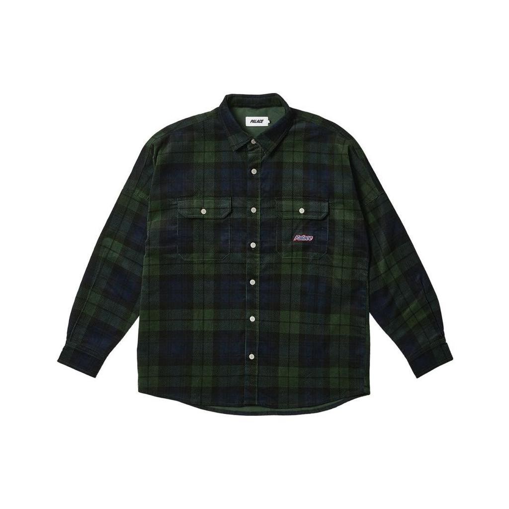 Palace Drop Shoulder Cord Shirt Tartan Unisex Tops Green P25SHT043