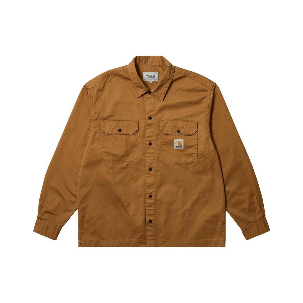 Palace X Carhartt WIP FW23 Co-Branded Classic Logo Dual Pocket Button-Down Shirt Unisex Tops Khaki I032721-KHAKI