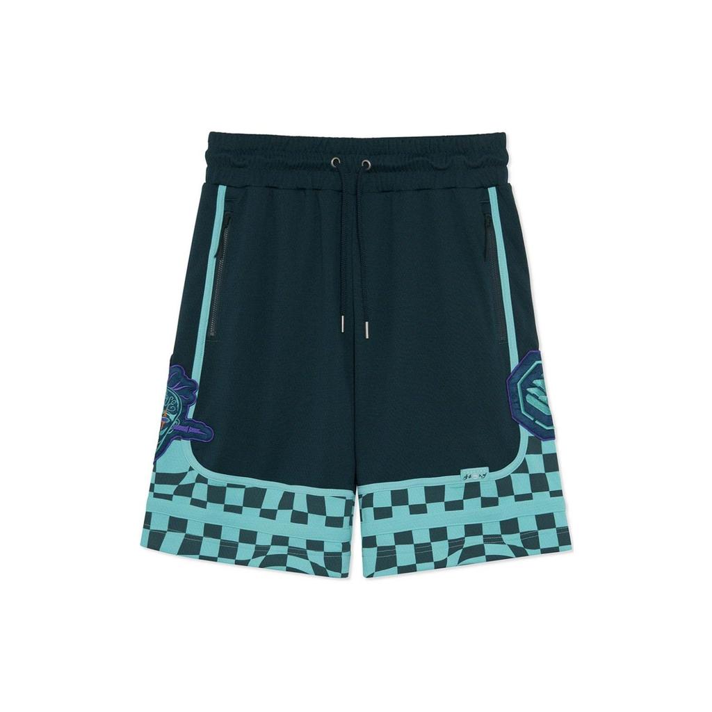 Li-Ning Sports Basketball Series Colorblock Checkered Casual Shorts Men Bottoms Dark-Green AAPR589-2