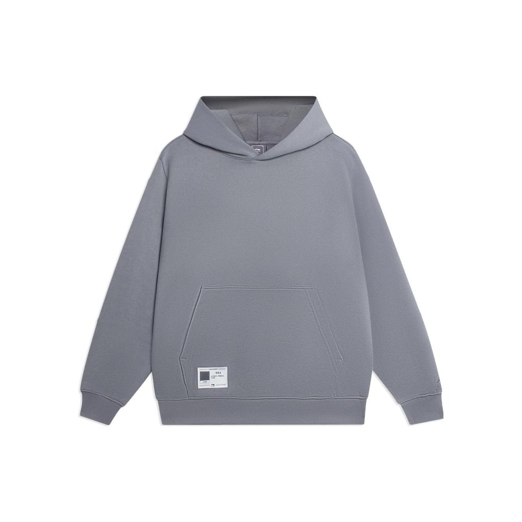 Li-Ning Sports Trend Series Solid Color Logo Front Pocket Long Sleeve Pullover Sweatshirt Men Tops Gray AWDSB15-9
